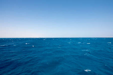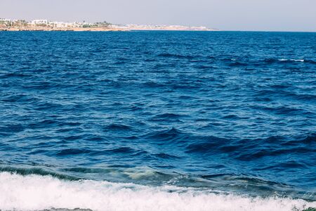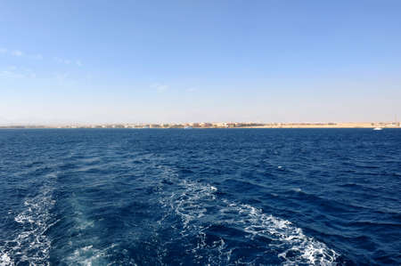The Red Sea is blue transparent with white foam from the boat .Vacation