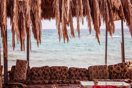 View of the beautiful Red Sea coast. A cozy place for watching the sea. A viewpoint in Asian Arabic style.