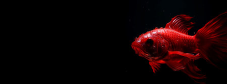 Red fish wallpaper on black background banner. Vivid ruby watery fauna animal. Generate ai
