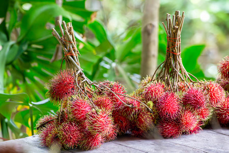 Fresh and ripe rambutan fruits, selective focus image. Close up.