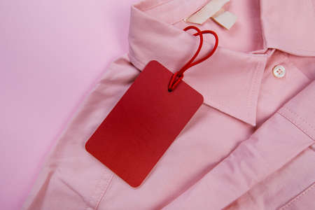 price tag hang over pink shirt close up view
