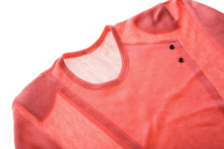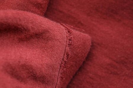 red sportswear closeup top view. seam and juncture inside out. breathable knitwear. clothing details macro.