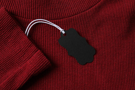 Cardboard tag on red garment, top view