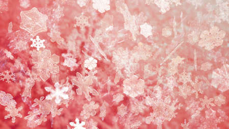 Snowflakes on red bokeh background. Christmas and New Year concept.