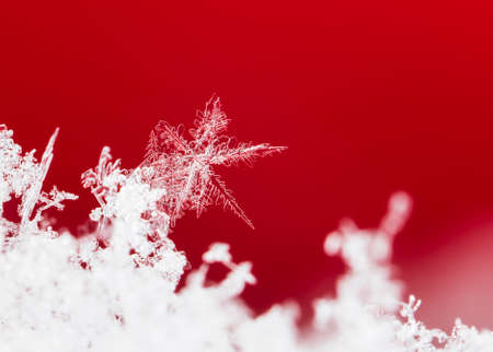 A captivating scene featuring delicate snowflakes gracefully falling against a warm red background. Ideal for winter-themed projects, this image evokes the festive spirit and captures the beauty of the season.