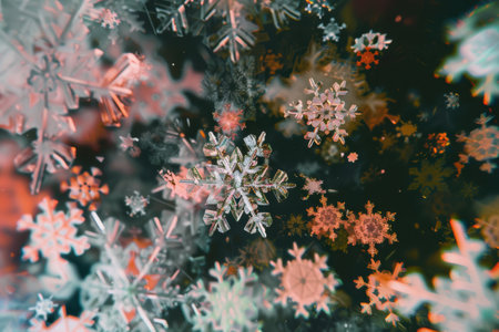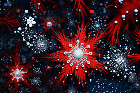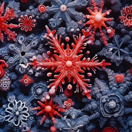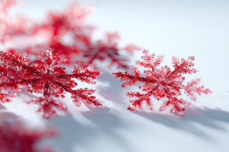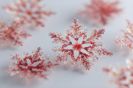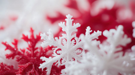 Beautiful snowflakes in vibrant red and white colors, capturing the essence of winter and the festive season. Perfect for holiday-themed projects.