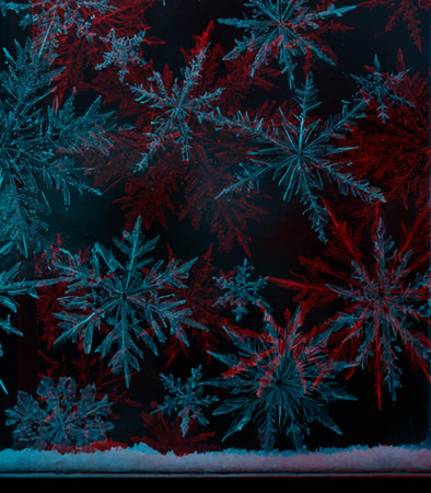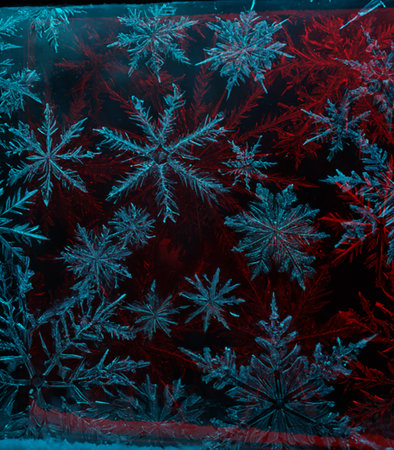 Intricate and Elegant Frost Patterns on Glass, Captivating Close-Up of Unique Snowflakes in Winter