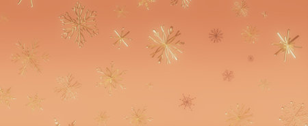 A minimalist design with golden snowflakes on a peach background. The image is perfect for a holiday card or a winter-themed design.