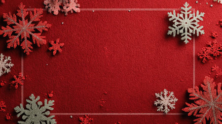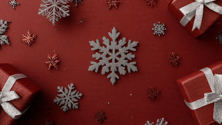 A red Christmas background decorated with snowflakes, bringing the spirit of the season to life, ideal for greeting cards or seasonal content creation.