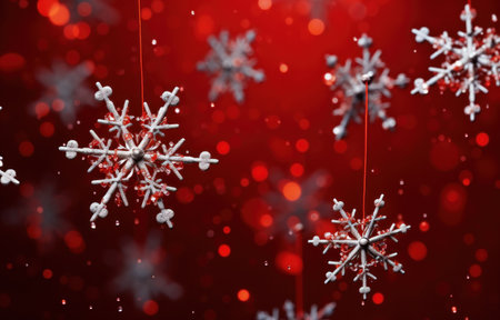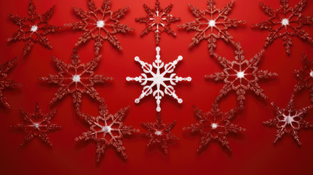 Christmas background with red snowflakes, festive decoration, winter celebration theme Perfect for holiday designs and seasonal promotions Elegant and cheerful atmosphere