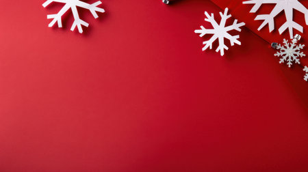 Festive red backdrop decorated with elegant snowflakes for joyful Christmas and winter designs