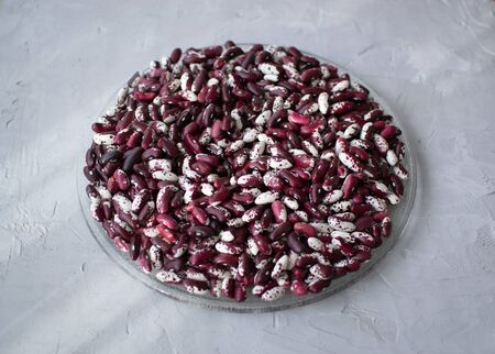 White and red beans on a gray background. Beans are a healthy, tasty and satisfying product