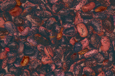 Pinto beans texture background, Phaseolus vulgaris, top view, macro.