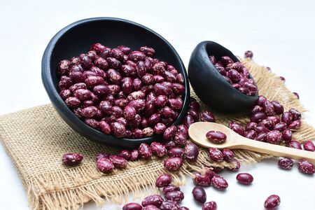 Red Kidney Bean on white wooden textured table, food background with copy space