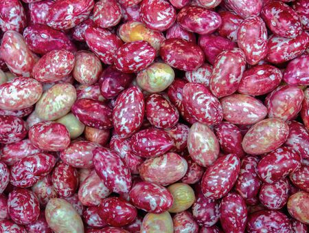 Macro photography of a heap of borlotti beans. Captured at the local traditional market of the colonial town of Villa de leyva, in the Andean mountains of central Colombia.