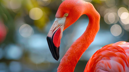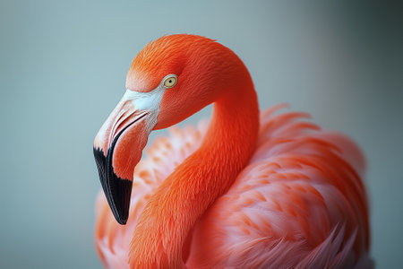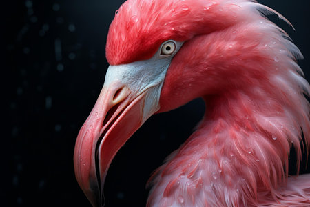 Striking Flamingo closeup head. Nature pink feather. Generate AI