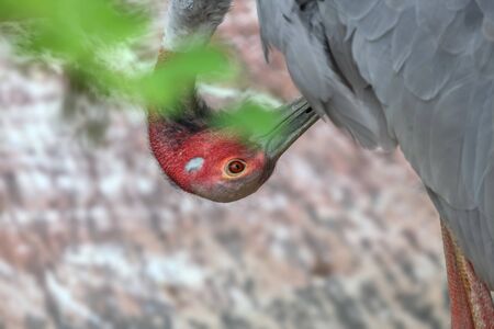 Close-up portrait of Red-legged Seriema, also known as the Crested Cariama Cariama cristata