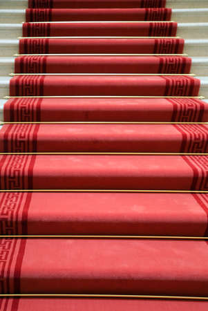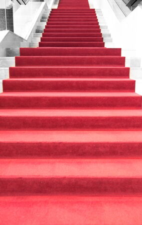 Red carpet on a stairway to mark the route of heads of state, vips and celebrities on ceremonial and formal occasions or events