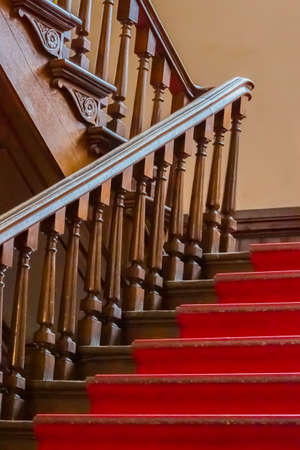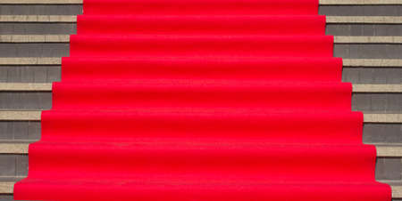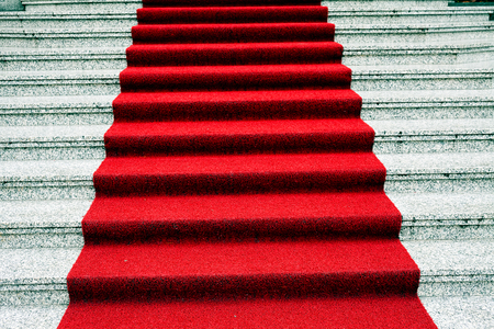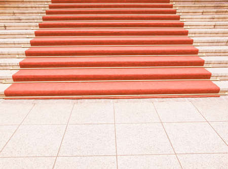 Red carpet on a stairway used to mark the route taken by heads of state, vips and celebrities on ceremonial and formal occasions or events vintage