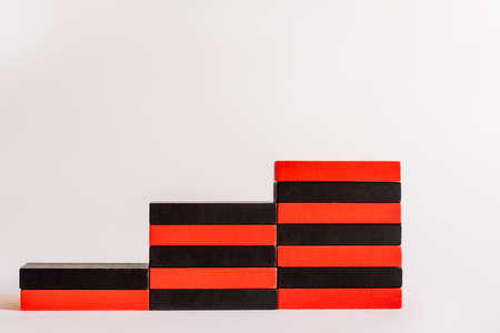 Wooden block stands on background vertical bars. Systematic clear and thoughtful approach is key to imminent success. Motivation and stimulation. Motivation for success, desire to become better
