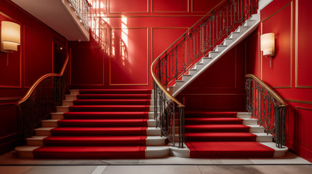 staircase of the building with luxurious red carpet symbol of nobility luxury and wealth