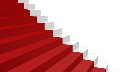 zoom on part a new white glossy stairs simple shape with a red carpet in diagonal perspective