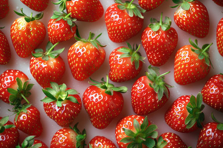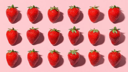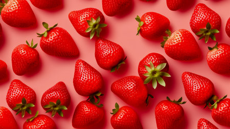 Mouthwatering strawberries laid out on a contrasting pink backdrop, promising a delightful burst of flavor and color