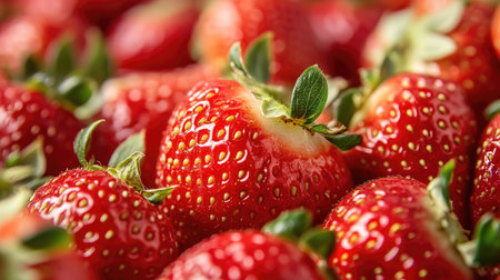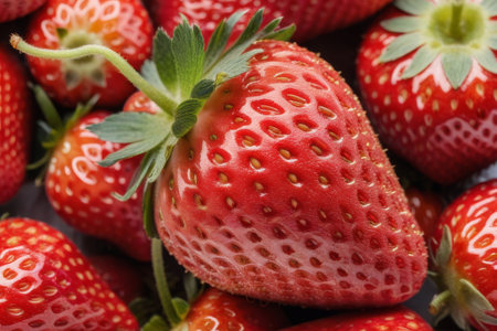 An AI generated illustration of A vibrant macro shot of fresh, ripe red strawberries