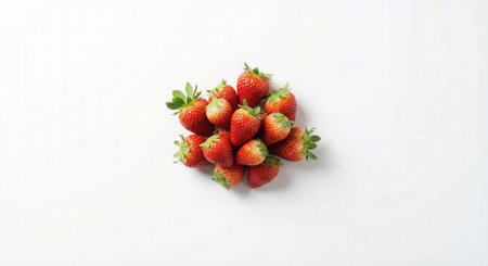 A beautiful arrangement of fresh red strawberries on a white background, showcasing their vibrant color and natural texture, ideal for healthy eating and culinary uses.