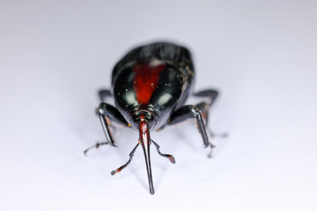macro shot of a red weevil isolated over white