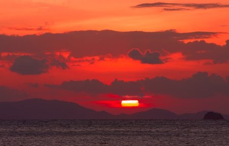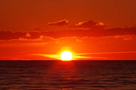 Beautiful sunset over the sea. Colorful sky with red clouds.
