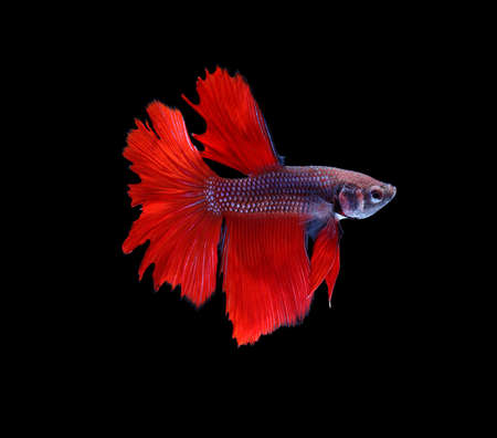 Capture the moving moment of red siamese fighting fish isolated on black background. betta fish.
