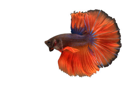 Capture the moving moment of red-blue siamese fighting fish isolated on white background. betta fish.