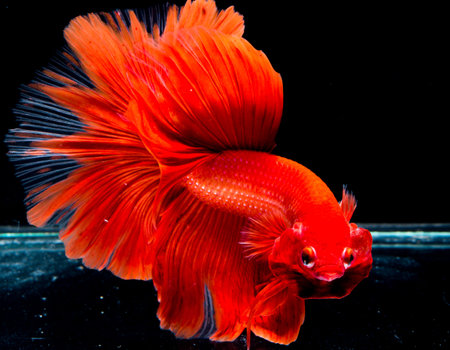 Betta fish super red Halfmoon siamnese Fighting Fish Splendens on black background