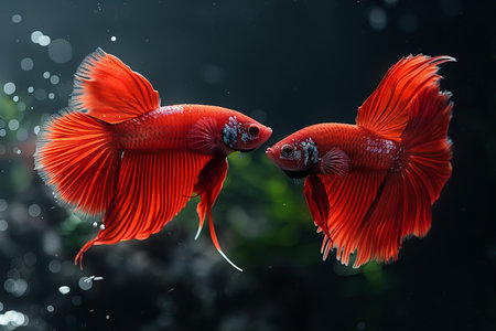Fighting fish is a traditional sport of Thailand that represents the uniqueness of the colorful fish. Raised for fighting or entertainment, on a black background and copy space.