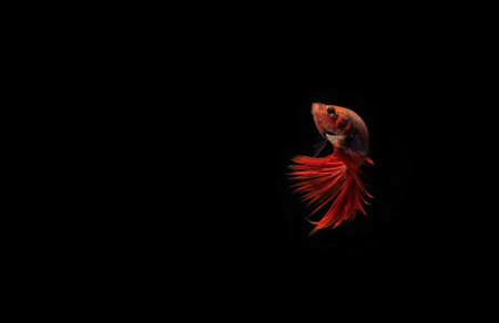 Halfmoon Betta fighting fish in Thailand on isolated black background. The moving moment beautiful of red Siamese betta fish with copy space.