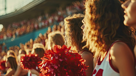 Enthusiastic Cheerleaders Inspire Crowds Spirit, Elevating Motivation At High School Stadium.