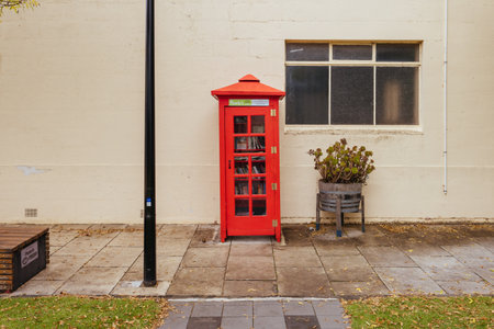 Red Phone Booth on Side of Street, Public Communication and Urban Landscape
