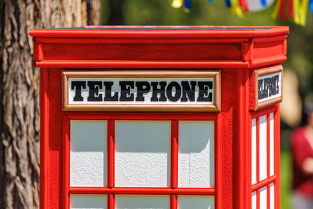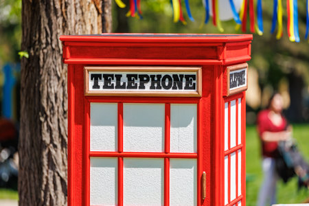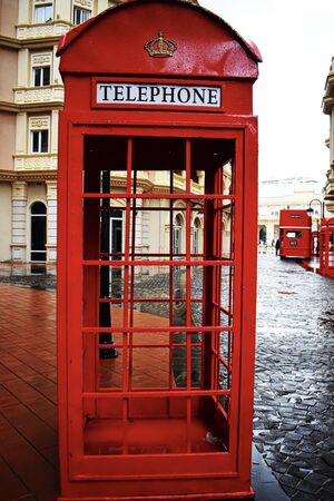 London red telephone. English symbol - phone booth.