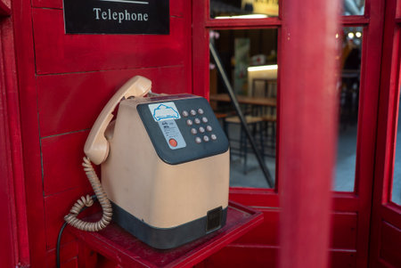 This image features a vintage telephone in a red booth, evoking nostalgia and historical significance. The classic design showcases the charm of retro communication devices.