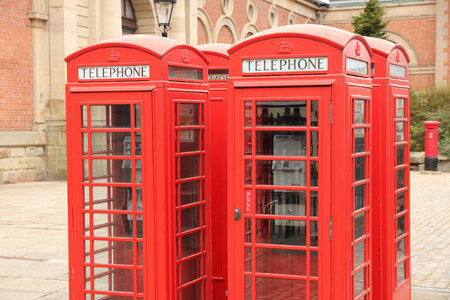 iconic red telephone booths in London, UK