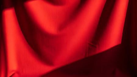 Deep red fabric curtain with visible folds and soft shadows ideal for stage background or decoration.