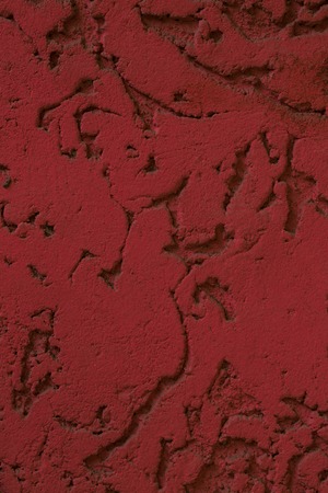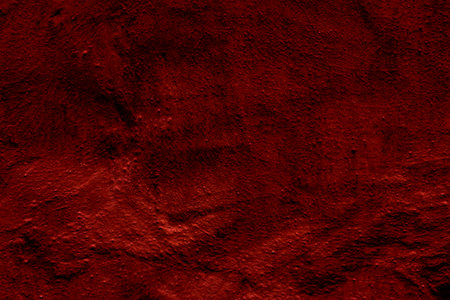 Red paint dirty wall . Close up of abstract monochromatic background. Rough textured surface.