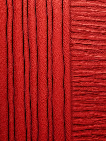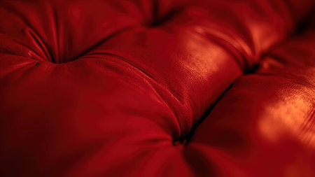 A close-up detail captures the sumptuous texture of a red leather furniture piece, ideal for interior decor. The elegant, buttoned surface showcases rich, deep red hues and a smooth, inviting feel. This macro shot highlights the luxurious upholstery, perfect for projects requiring a classic, vintage aesthetic. This image is ideal for showcasing comfort, sophistication, and warmth in home decor, interior design, and design element applications.