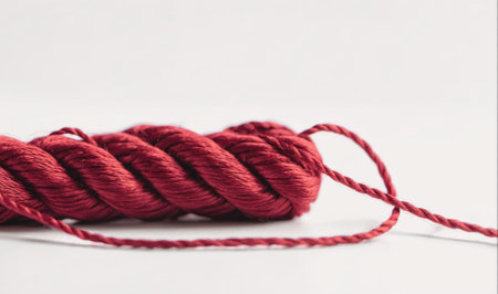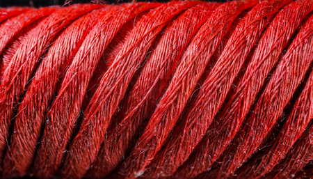 Close-up of intertwined red ropes showing detailed texture and fibers. That the image is generated using AI.