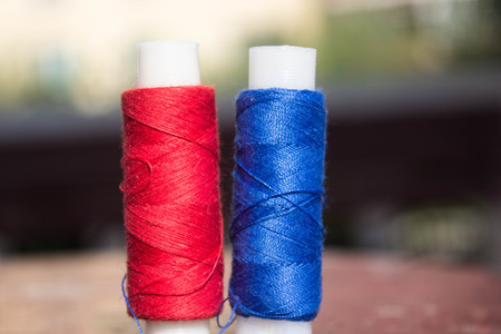 red and blue thread on the table