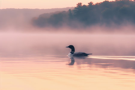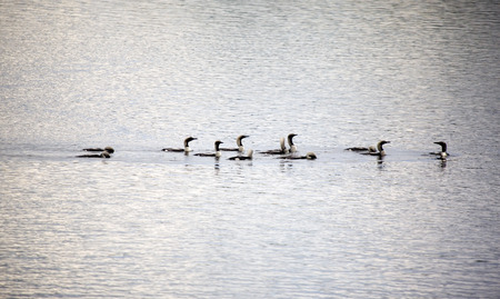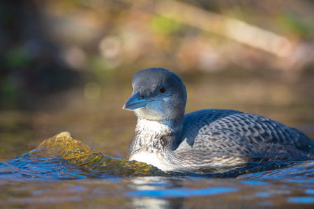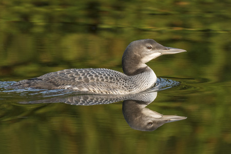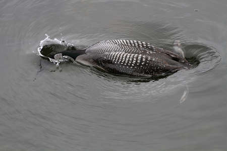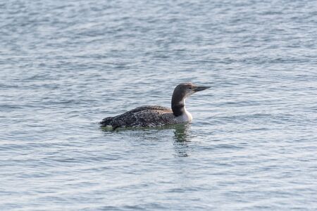 Common Loon Adult in winter plumage in a northern Wisconsin lake. The photo is taken in the fall right before they migrate south for the winter.