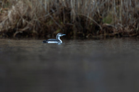 Black-throated loon (Gavia arctica) swimming in a lake in spring.