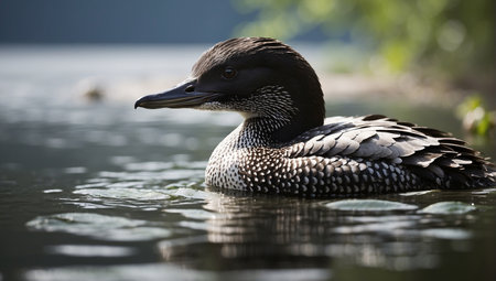 Duck loon bird animal swims on blue water in the river or lake. Common loon or great northern diver - Gavia immer. AI-Generated image