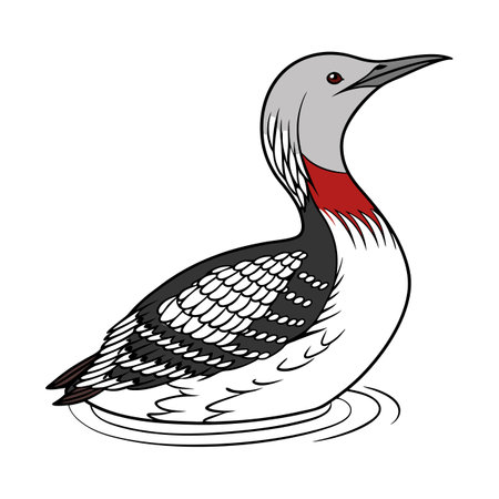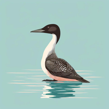 the common loon, majestically depicted in a minimal screenprint illustration, showcases its sleek full body in a stunning risograph print, highlighting the bird's distinctive black and white feathers, a perfect piece of modern wildlife art for nature enthusiasts and bird lovers alike. ai generated